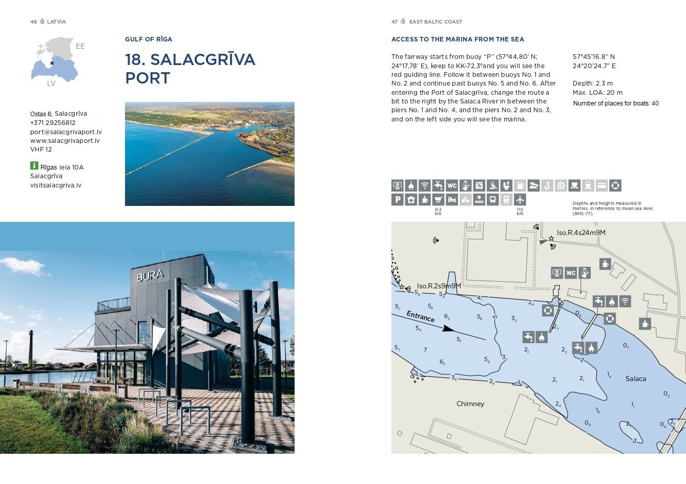 Salacgrīvas jahtu ostas koordinātes : 57045’16,8”N, 24020’24,7”E